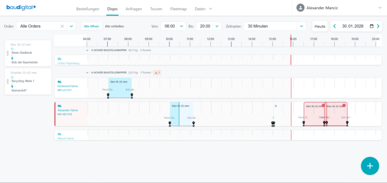 Zentrale Steuerung von Touren, Fahrzeugen und Einsätzen im laufenden Betrieb.